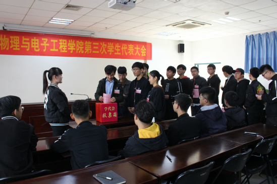会上,与会代表还审议并通过了《郑州轻工业学院物理与电子工程学院学生会章程》及大会选举办法,差额选举产生新一届物理与电子工程学院学生会主席团成员。
